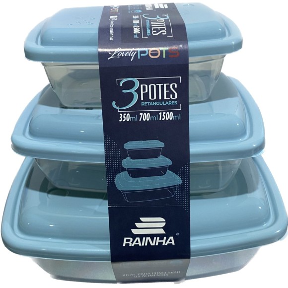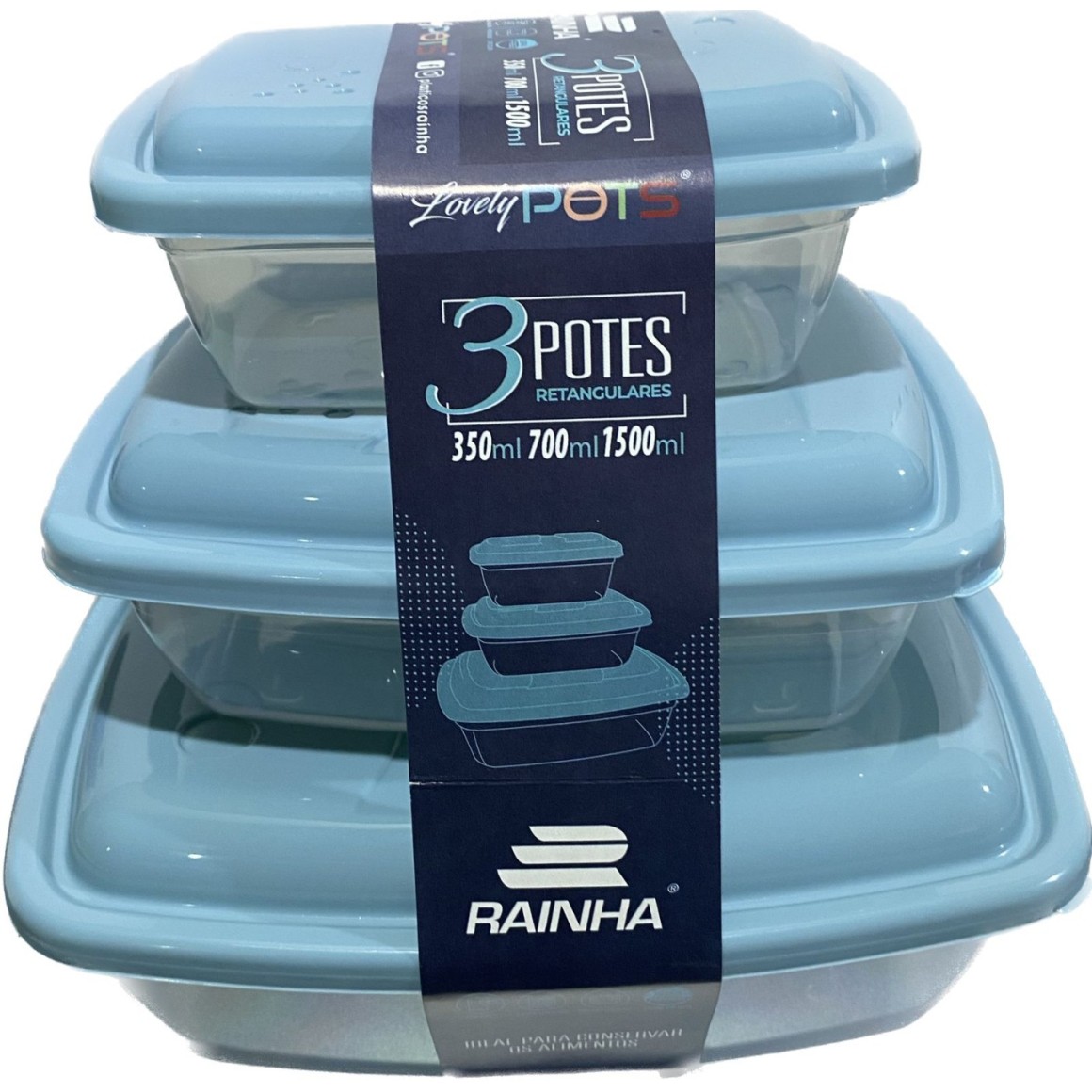 KIT 3 POTES RAINHA RETANGULAR 350ML/700ML/1500ML